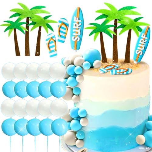 JeVenis Surf Birthday Cake Decorations Baby On Broad Cake Decoration Beach Surf Wave Cake Topper Surfboard Swimming Slippers Cake Surfing Birthday Party Supplies