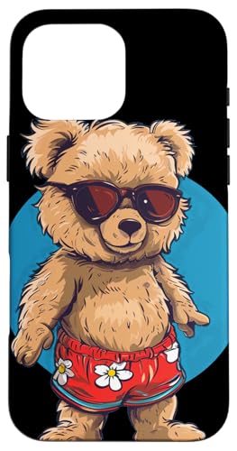 Cool Fun Teddy Bear in swimming trunks and Sunglasses Case for iPhone 16 Pro Max