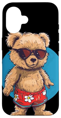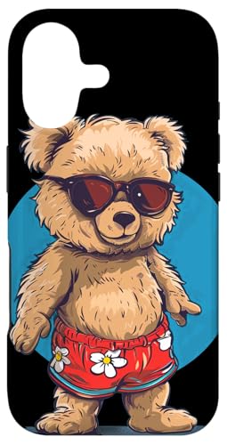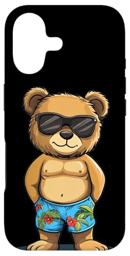 Cool Fun Teddy Bear in swimming trunks and Sunglasses Case for iPhone 16