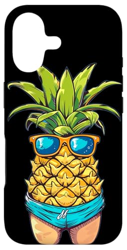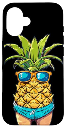 Funny Vacation Pineapple in swimming trunks and Sunglasses Case for iPhone 16
