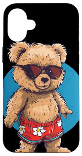 Cool Fun Teddy Bear in swimming trunks and Sunglasses Case for iPhone 16 Plus