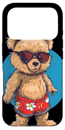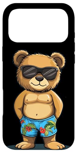 Cool Fun Teddy Bear in swimming trunks and Sunglasses Case for iPhone 17 Pro