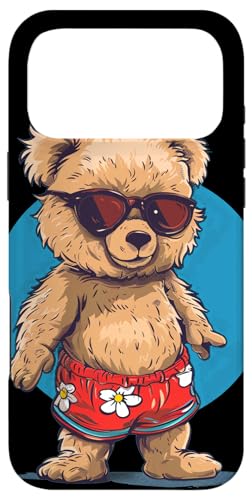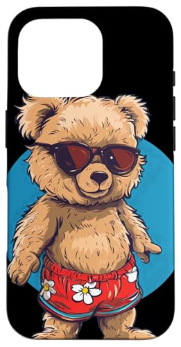 Cool Fun Teddy Bear in swimming trunks and Sunglasses Case for iPhone 16 Pro