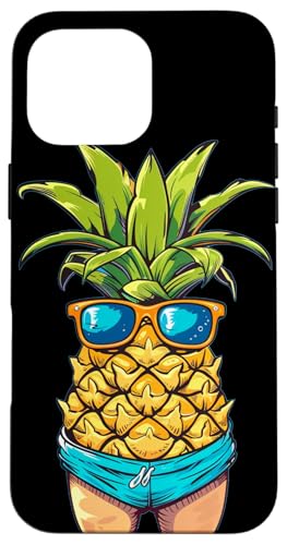 Funny Vacation Pineapple in swimming trunks and Sunglasses Case for iPhone 16 Pro Max