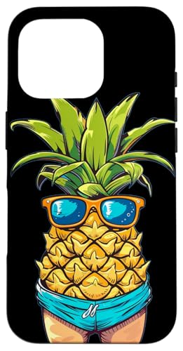 Funny Vacation Pineapple in swimming trunks and Sunglasses Case for iPhone 16 Pro