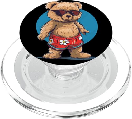 Cool Fun Teddy Bear in swimming trunks and Sunglasses PopSockets PopGrip for MagSafe