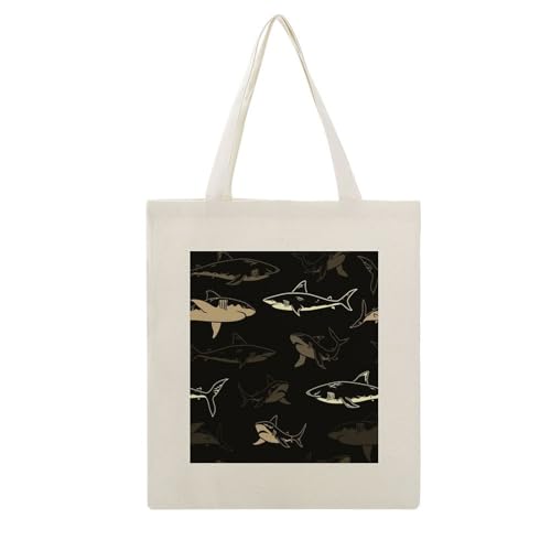 Shopping Tote Bag, Insulated Cooler Reusable Bag USA Made Lunch Box Thermal Portable Handbag Print Vintage Retro Swimming Sharks on Dark