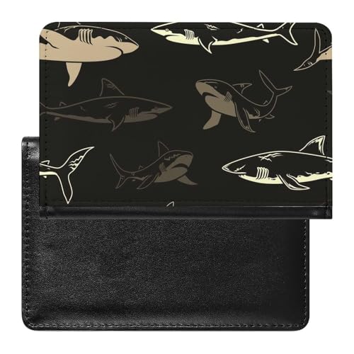 Vintage Retro Swimming Sharks on Dark Women's Passport Protector, Men's Passport Protector, PU Travel Passport Protector for Women Men Worker 5.8 x 3.9 x 0.4 inch