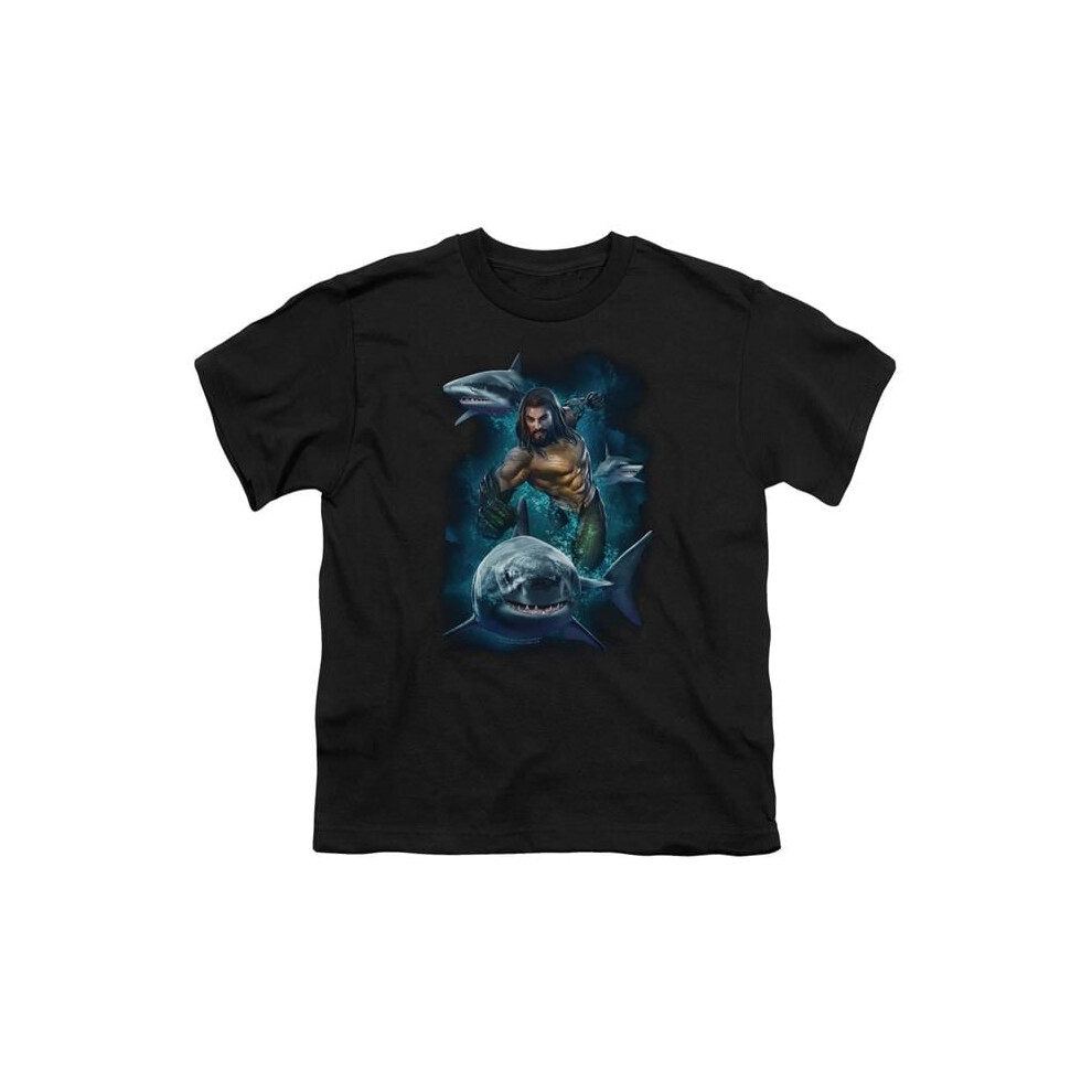Trevco Sportswear AQUA144-YT-2 Aquaman Movie Swimming with Sharks Youth Short Sleeve T-Shirt, Black - Medium