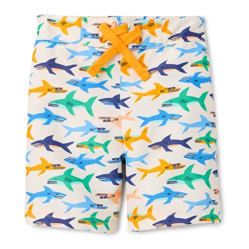 Amazon Essentials Boy's Quick-Dry Swimming Board Shorts Swimming Trunks, Ivory Sharks, 11-12 Years
