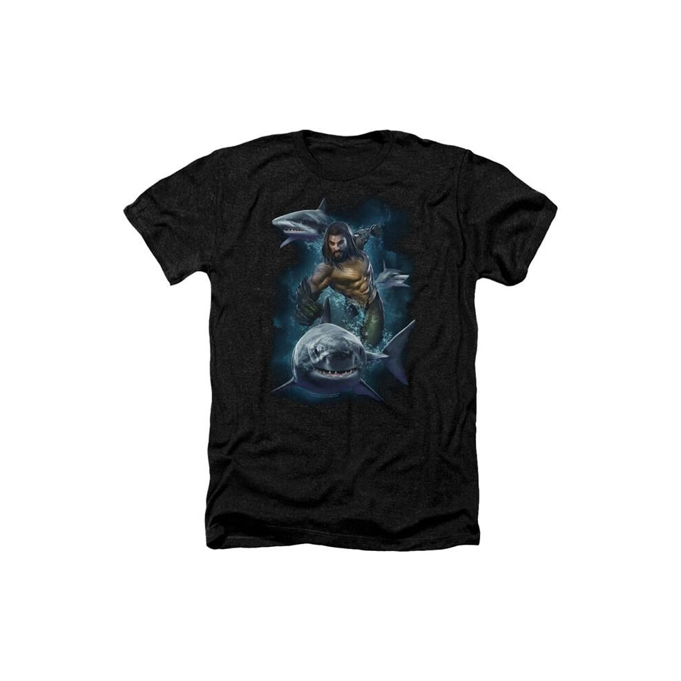 Trevco Sportswear AQUA144-HA-2 Aquaman Movie Swimming with Sharks Adult Regular Fit Heather Short Sleeve T-Shirt, Charcoal - Medium