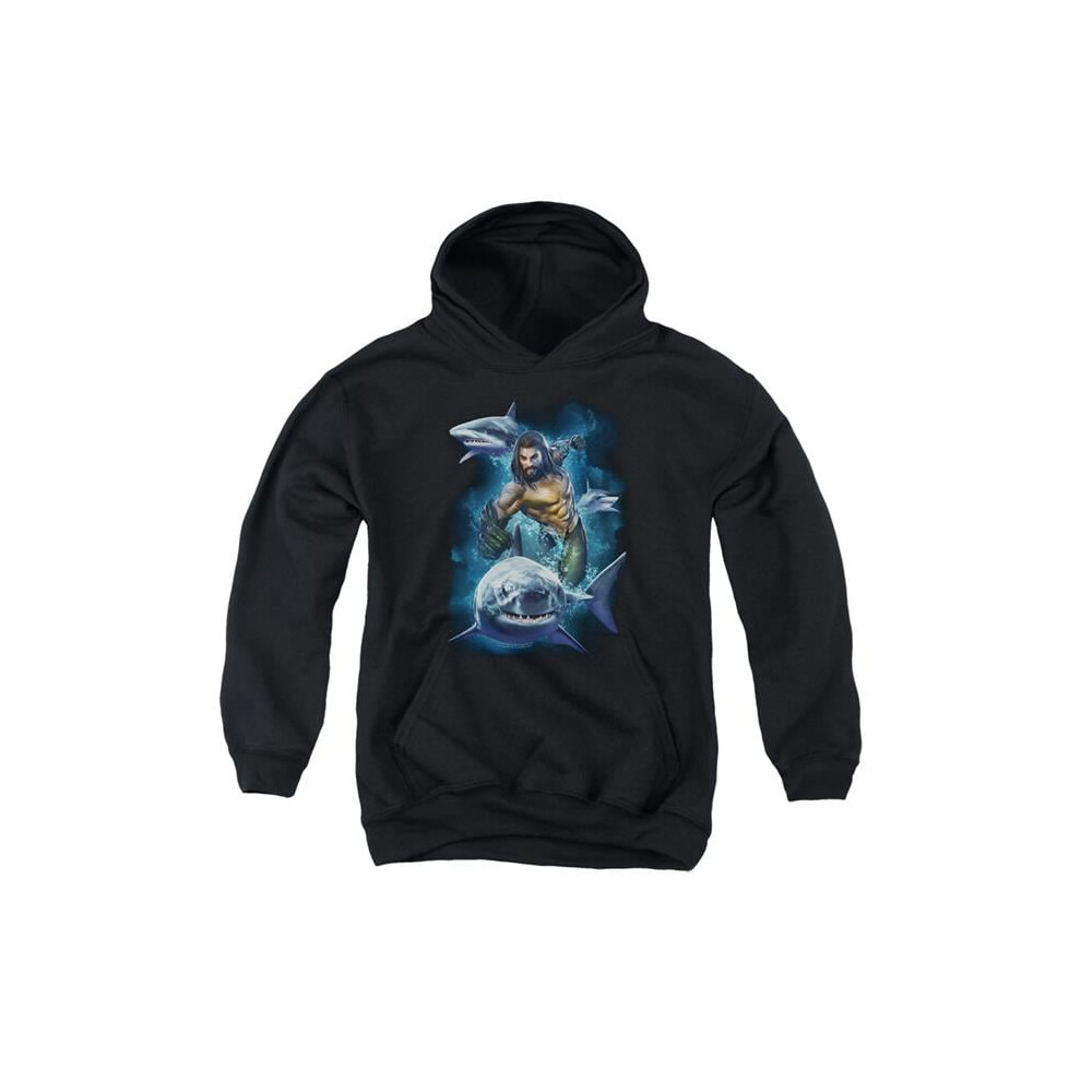 Trevco Sportswear AQUA144-YFTH-3 Aquaman Movie Swimming with Sharks Youth Hooded Sweatshirt, Black - Large