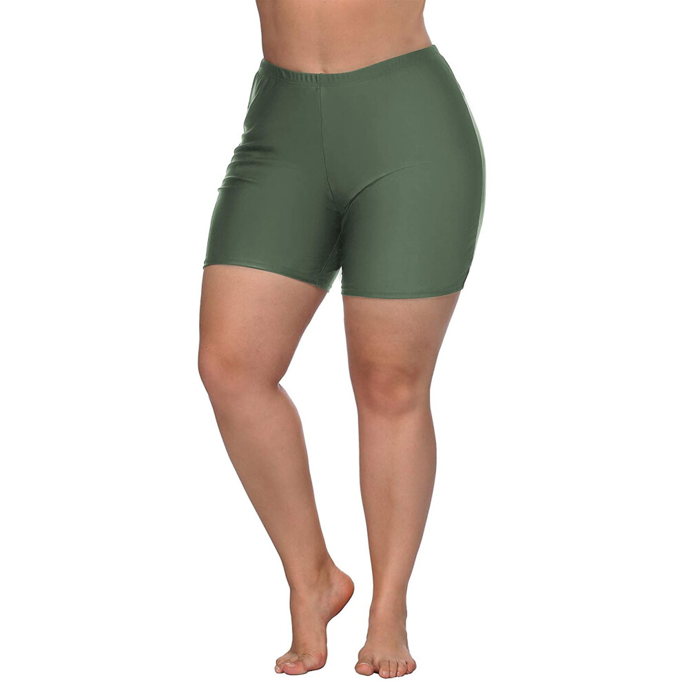 (2X, Army Green) Womens Plus Size Swim Shorts High Waisted Swimsuit Shorts Boyleg Swim Bottoms