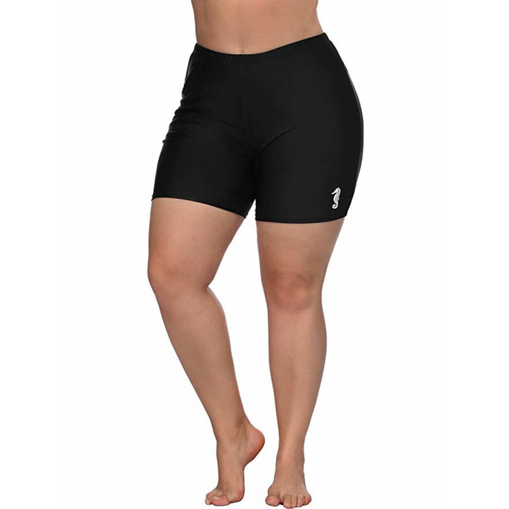 (2X, Black) Womens Plus Size Swim Shorts High Waisted Swimsuit Shorts Boyleg Swim Bottoms