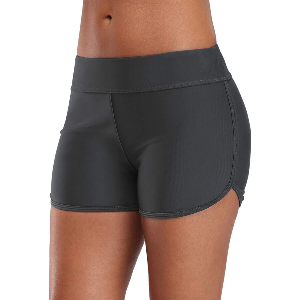 (S, Gray) Womens Plus Size Swim Shorts High Waisted Swimsuit Shorts Boyleg Swim Bottoms