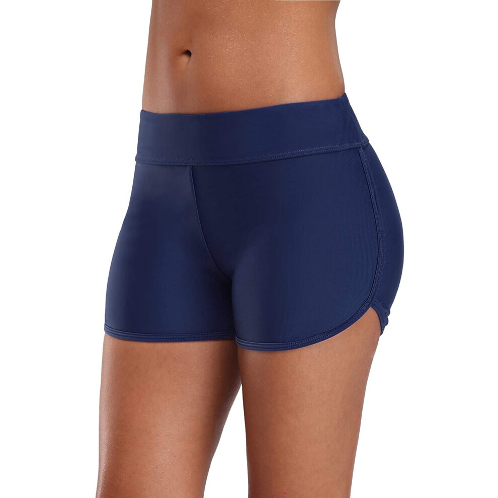 (3X, Navy Blue) Womens Plus Size Swim Shorts High Waisted Swimsuit Shorts Boyleg Swim Bottoms