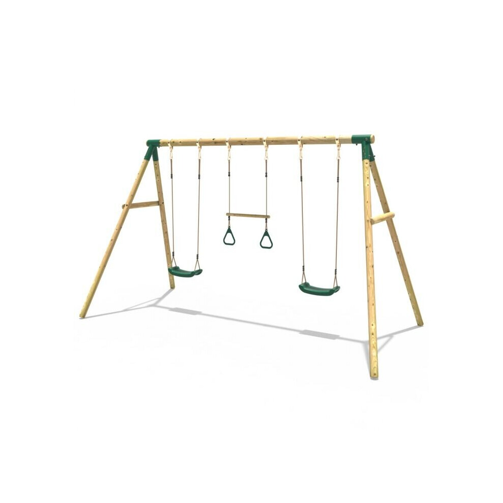 Rebo Wooden Garden Swing Set with 2 Swings and Trapeze Bar - Comet Green