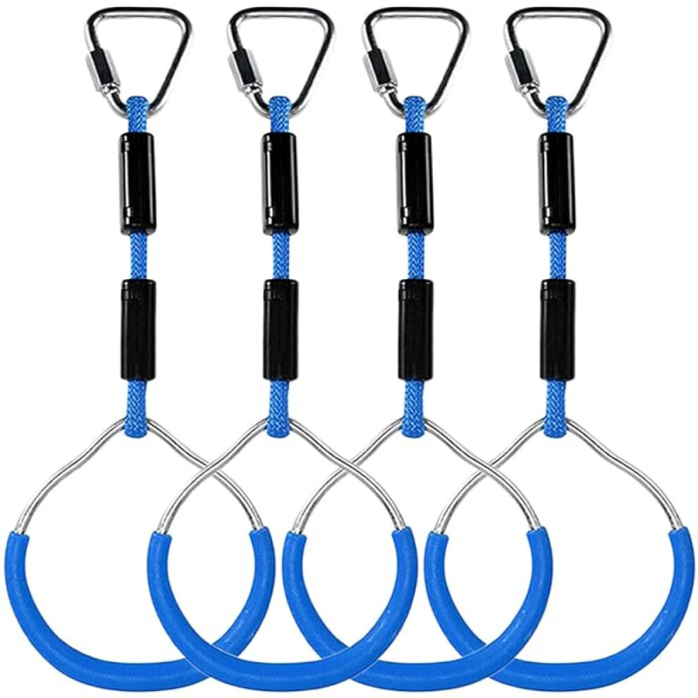 Dolibest Trapeze Ring, 4 Pack Gym Ring Monkey Bar Handle Grip with 29cm Rope & Carabiner for Outdoor Swing Set/Climbing Frame/Obstacle Course/Pullup/Olympic Training Indoor Activity, Blue