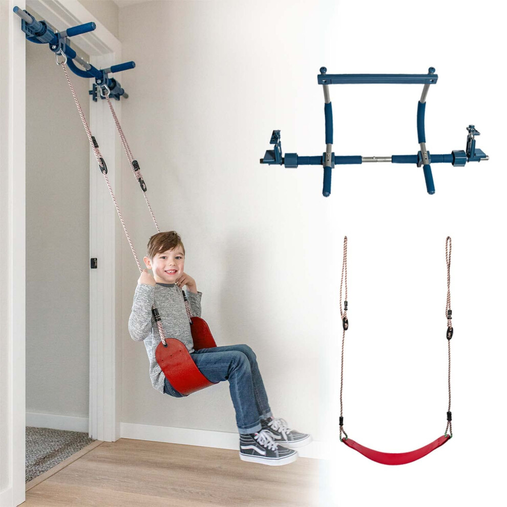 Gym 1 Deluxe Doorway Swing Set - All-in-One Indoor Gym and Playground for Kids and Adults - Two Attachments for Fun and Fitness Indoors: Pull-Up Bar a