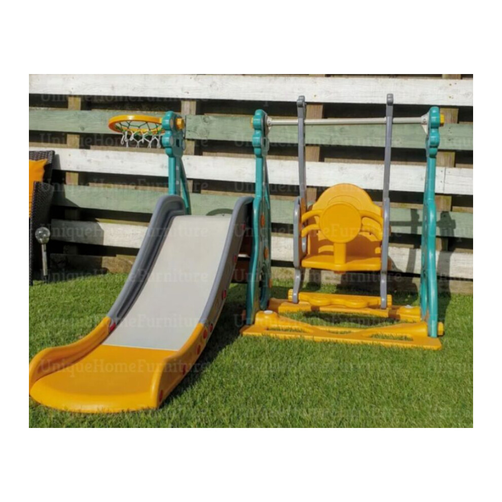 3 IN 1 Large Size Plastic Kids Playground Slide & Swing & Basketball Hoop DIY Assembly Set Toys