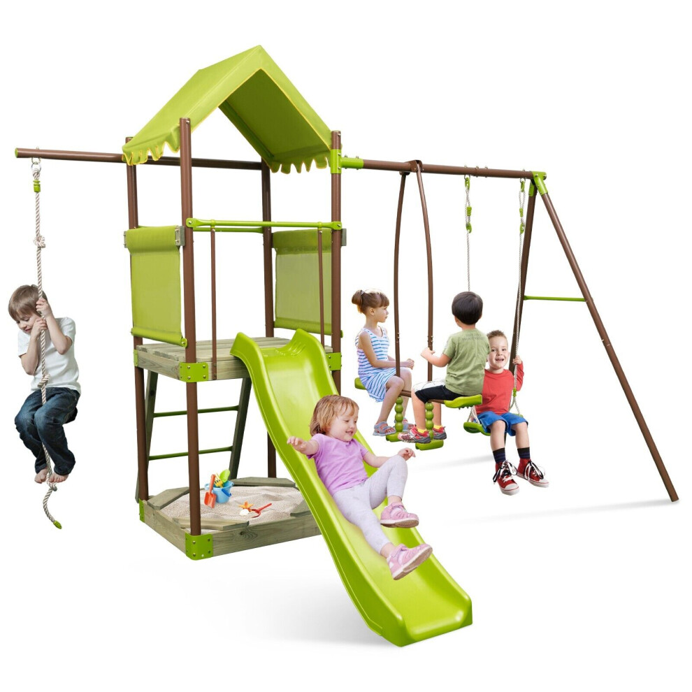 Kids Outdoor Playground Set Swing Slide Climbing Frame Weatherproof 4ft Tall