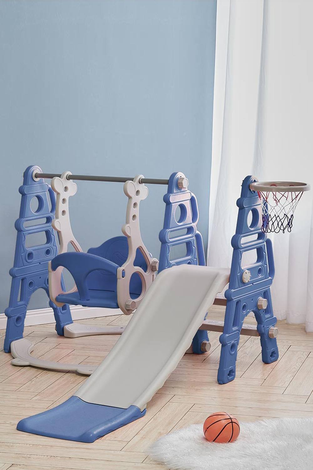 Living and Home 3-in-1 Children Toddler Swing and Slide Set with Basketball Hoop in Blue