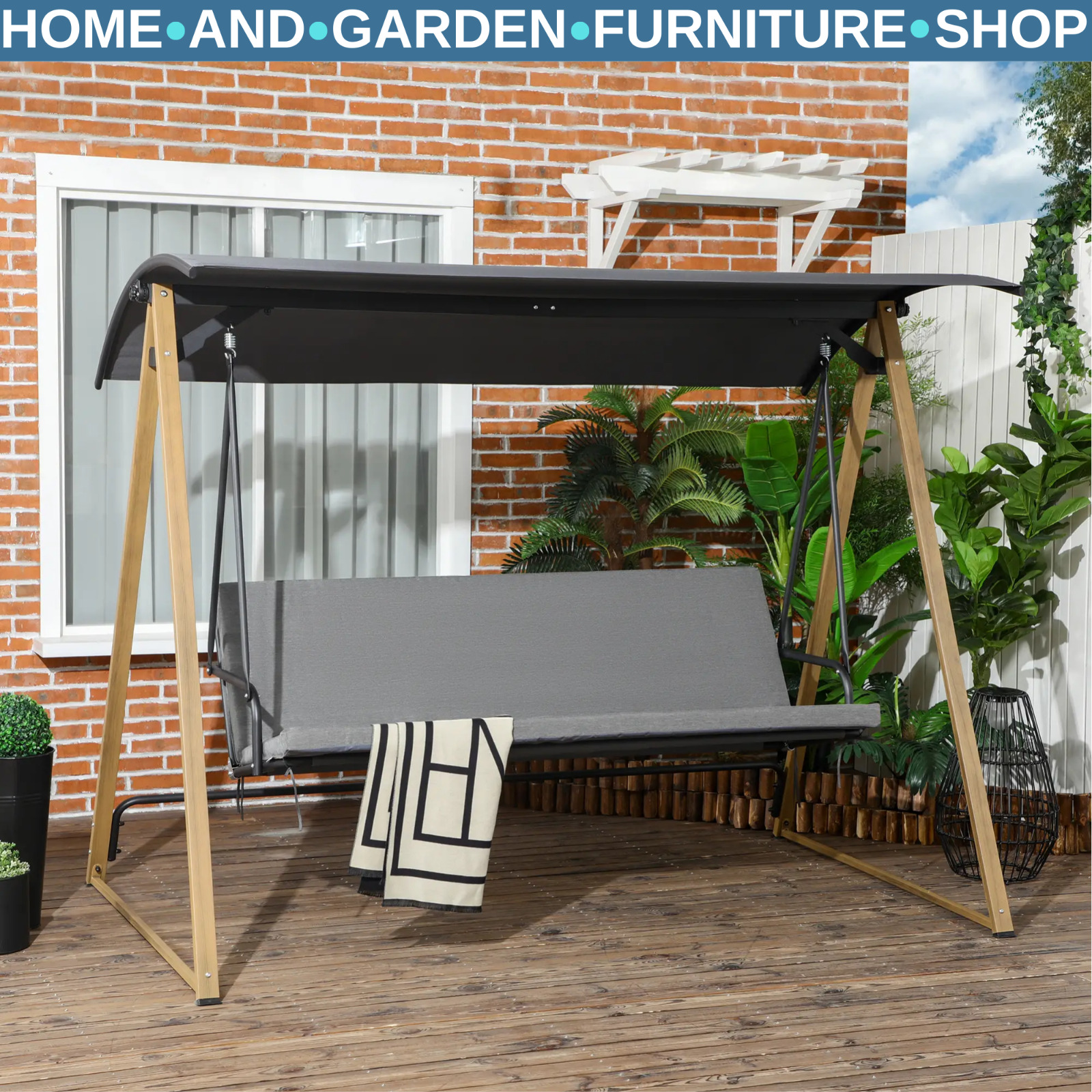 3 Seater Garden Swing Bench Adjustable Canopy Cushioned Seat Heavy Duty Swing