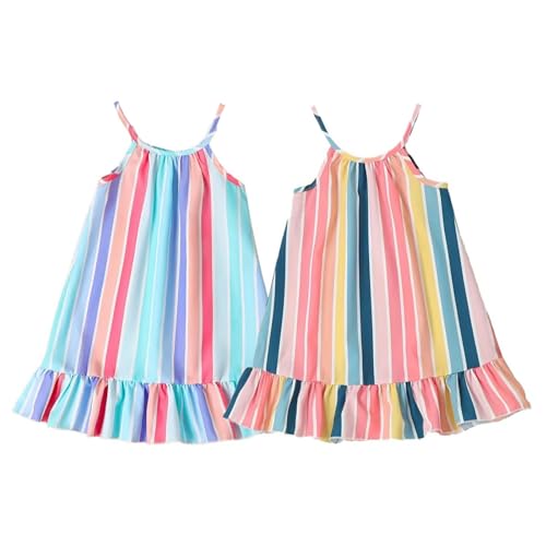 Girls Swing Dresses Spaghetti Strap,Toddler Girls Holiday Party Dress Sleeveless Striped Dance Outfit Two Piece Set for 2PCS