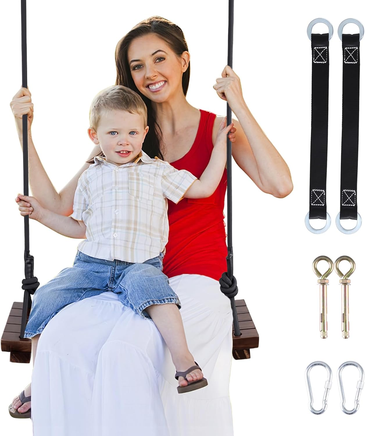 KINSPORY Wooden Tree Swing Set for Kids and Toddlers - Outdoor Swing Seat With Adjustable Nylon Rope and Hanging Straps Kit for Porch, Patio, Garden, Playground