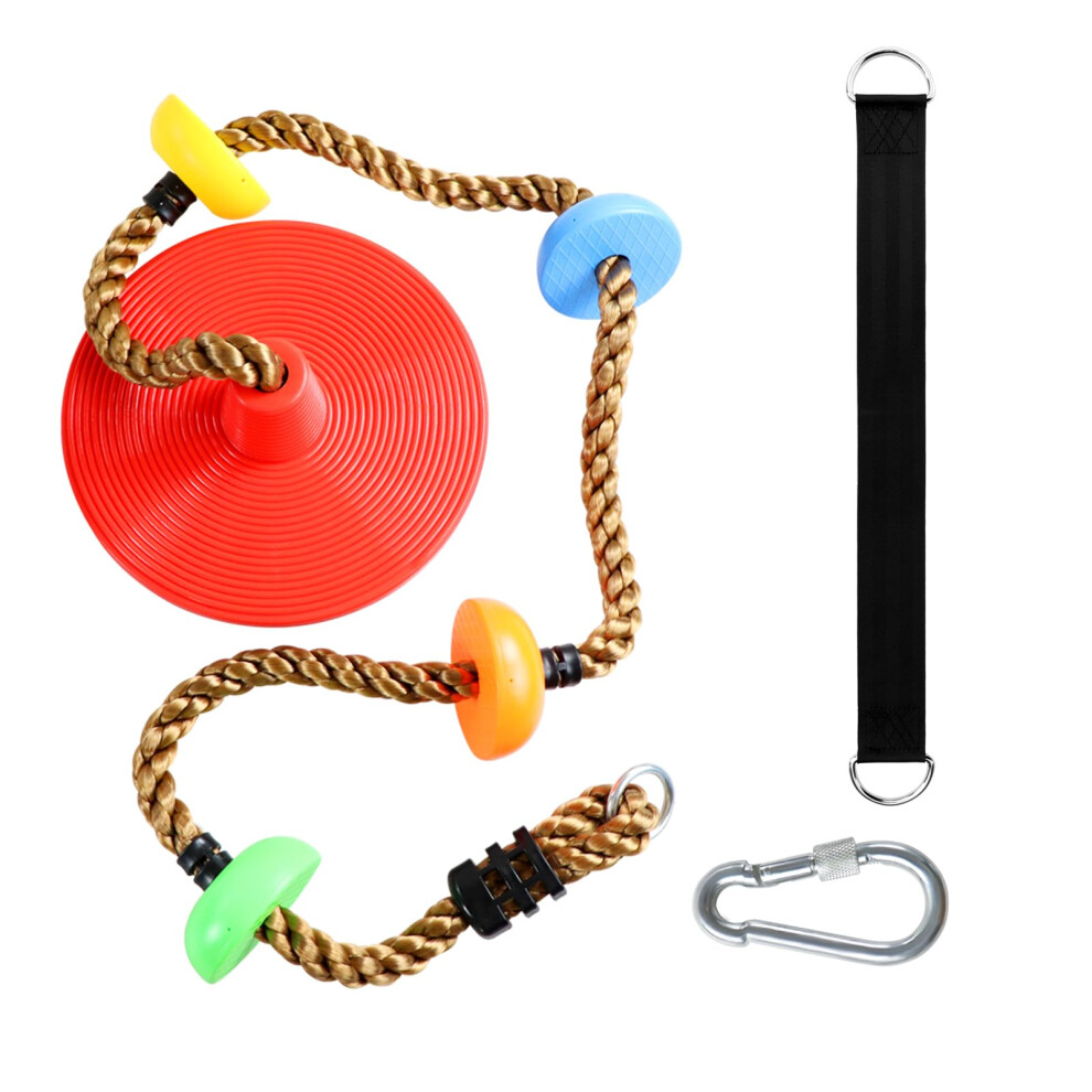 Climbing Rope with Platforms and Disc Swing Seat Set Playground Accessories Including Bonus Hanging Strap & Carabiner