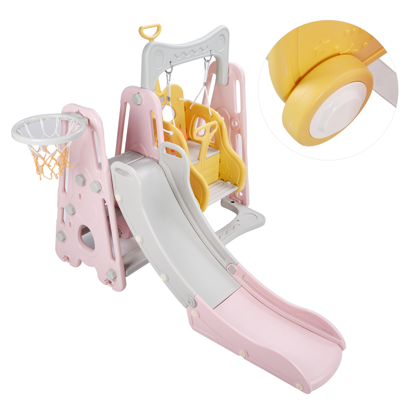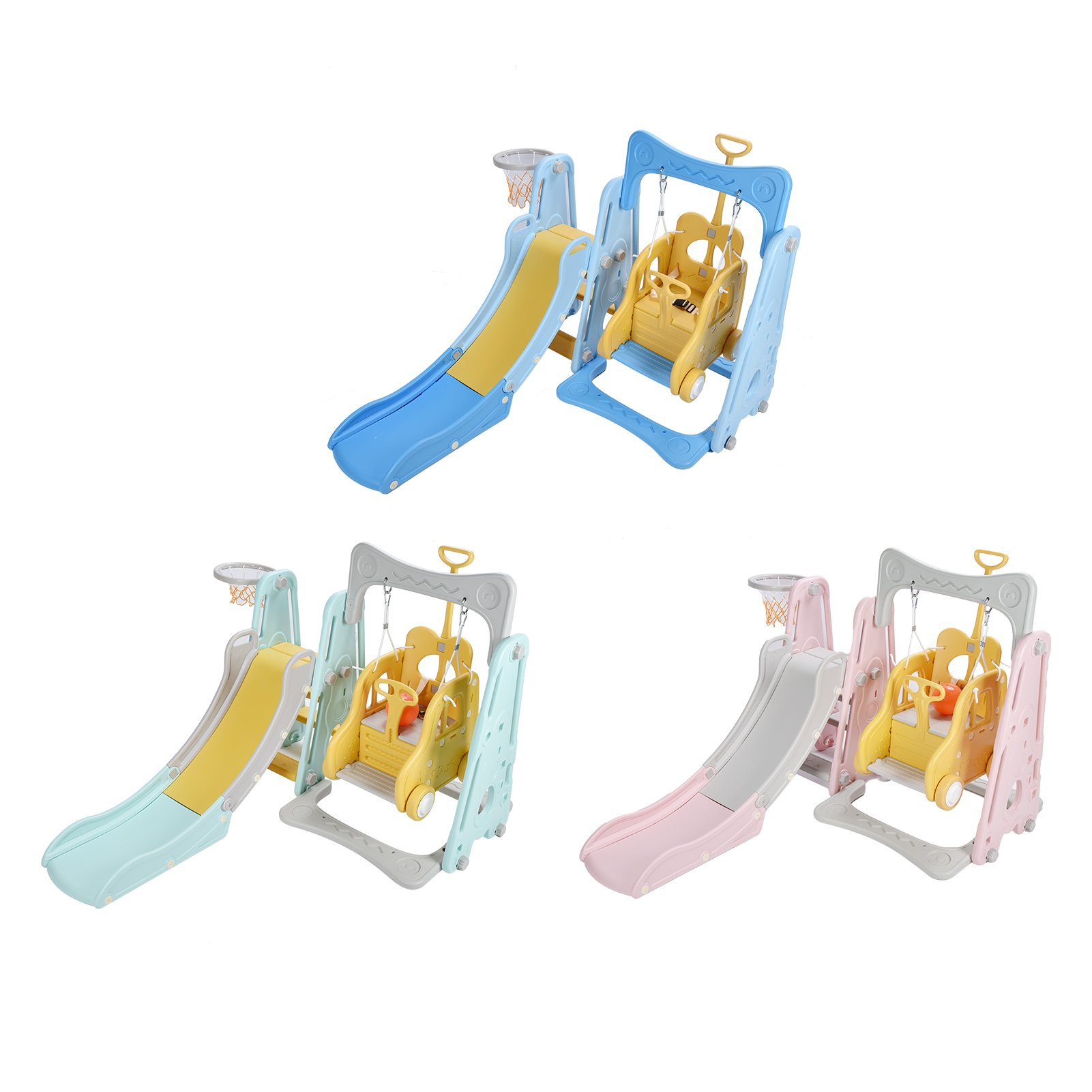3-IN-1 Kids Swing and Slide Set Activity Center with Basketball Hoop Slide Swing