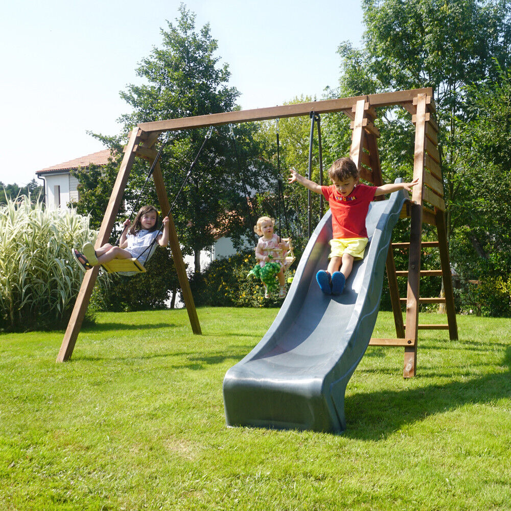 Soulet Trefle Infant & Child Triple Wooden Swing Set with Slide