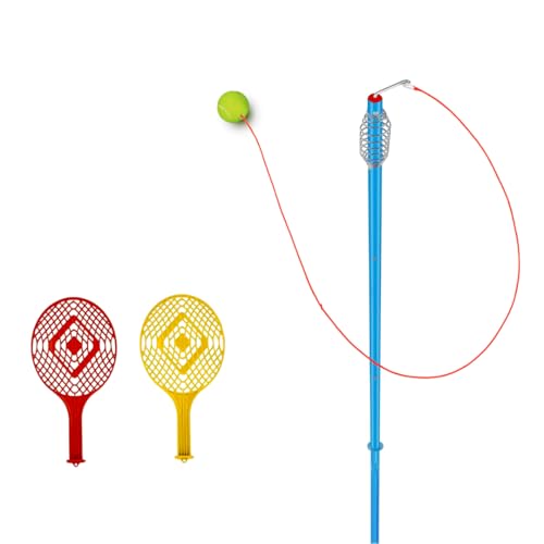 Swing Tennis ball Set, All Surface Classic Outdoor Game with Real Tennis Ball, Championship Bats, Adjustable Height, Portable Garden, Backyard Tennis Trainer for Kids & Adults