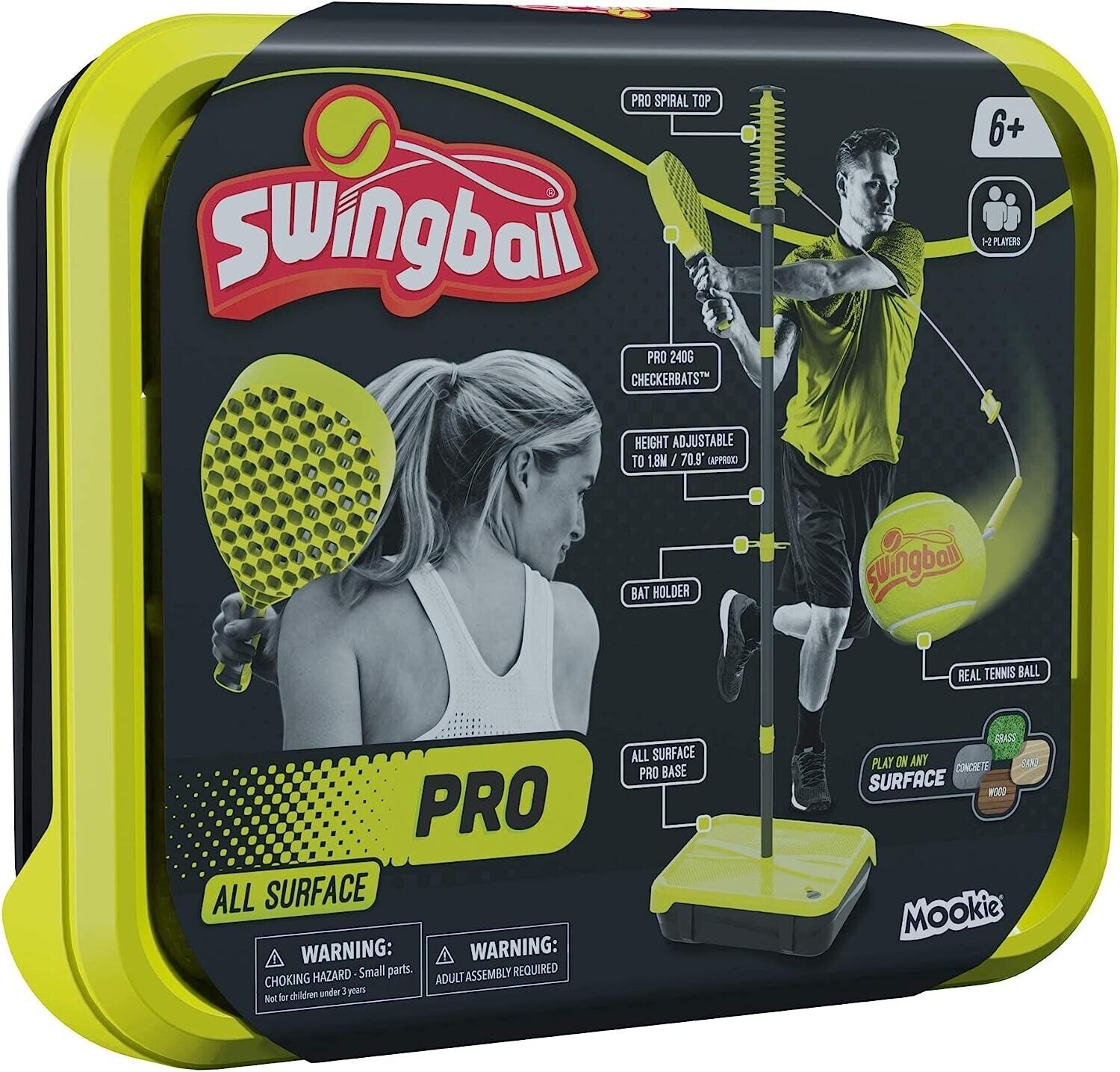 Swingballl PRO All Surface Tennis Ball Game Set, Swingball's Ultimate Outdoor Family Game for Ages 6+ to Adults, Real Tennis Ball and 2 Power Bats, Superior All Surface Base, Adjustable Height to 1.8M