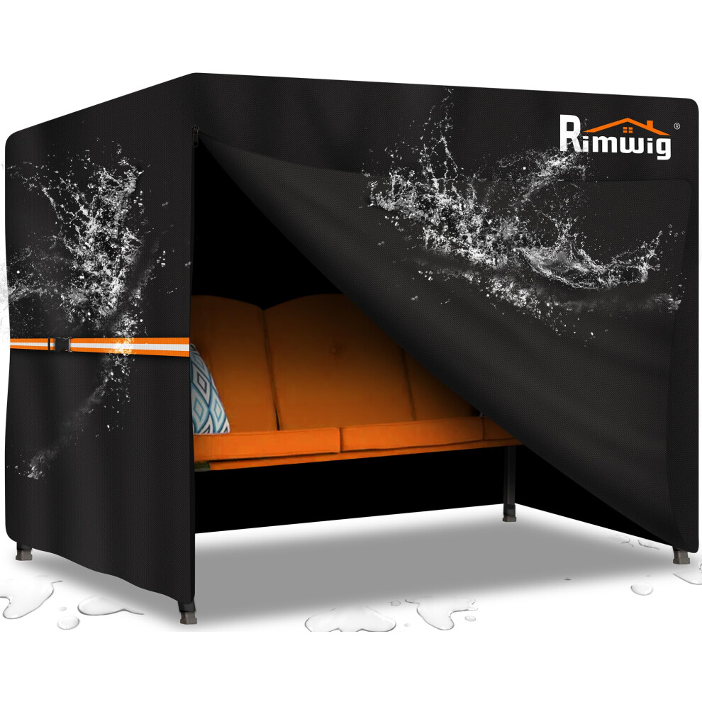 Rimwig Garden Swing Covers Waterproof Heavy Duty 3 Seater Outdoor Swinging Chair Cover Windproof Anti-UV Patio Garden Hammock Cover(215x125x170cm) - Black