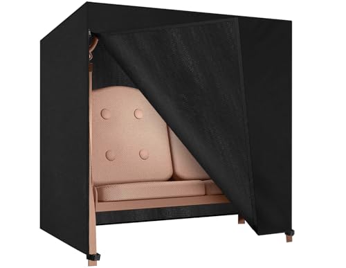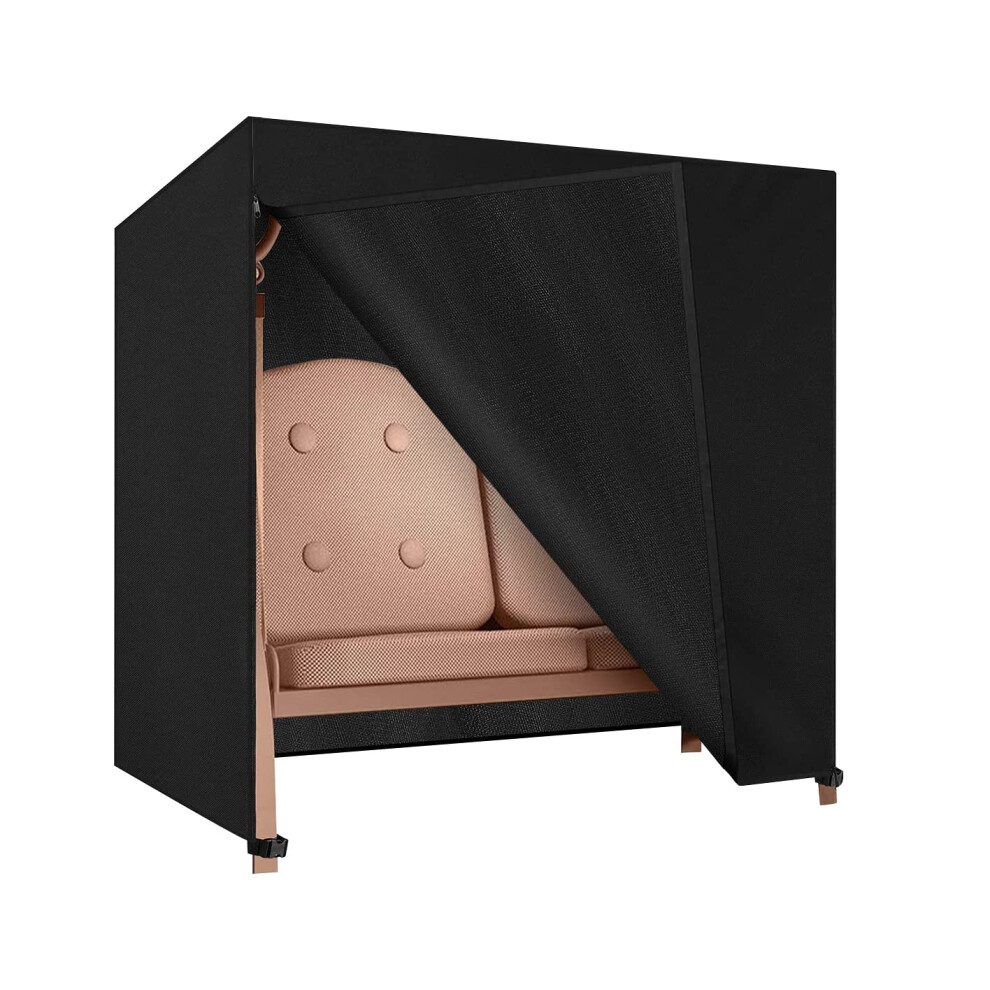 Dokon 2 Seater Garden Swing Covers Waterproof Heavy Duty Oxford Fabric Outdoor Swinging Chair Cover Windproof Anti-UV Patio Garden Hammock Cover with Zips (175x125x160cm) - Black
