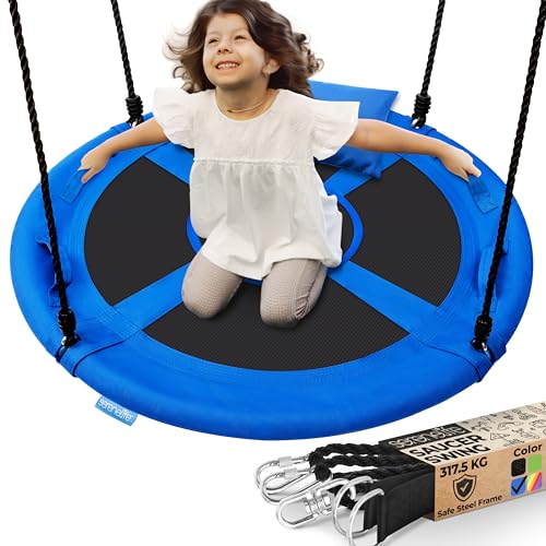 SereneLife Tree Swing Seat, Large Round Saucer Kids Swings, Adults and Kids Nest Swing, Durable Frame, 318kg Capacity, Indoor Outdoor Hanging Rope Swinging Seat for Backyard, Garden and More – Blue