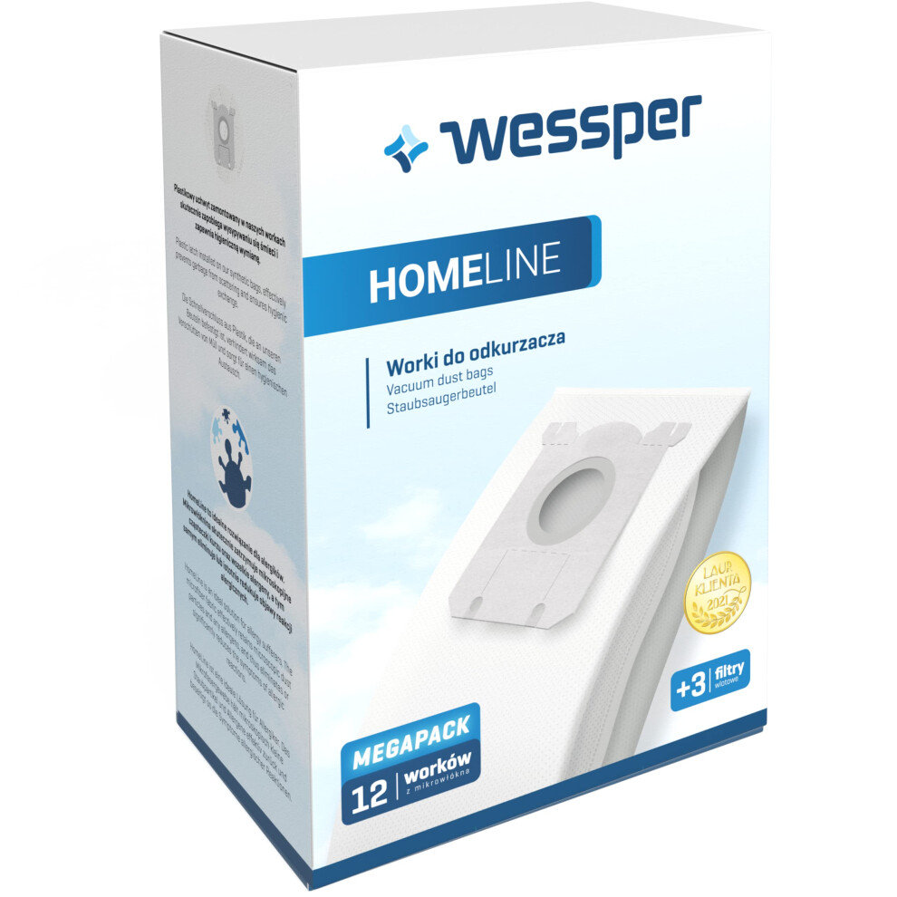 Wessper 12 Vacuum Cleaner Bags for Philips PowerGo AEG VX9-2-?KO VX4 VX6 VX7 and VX8 Vacuum Cleaners, Suitable for s-bag, Compatible with Swirl PH86