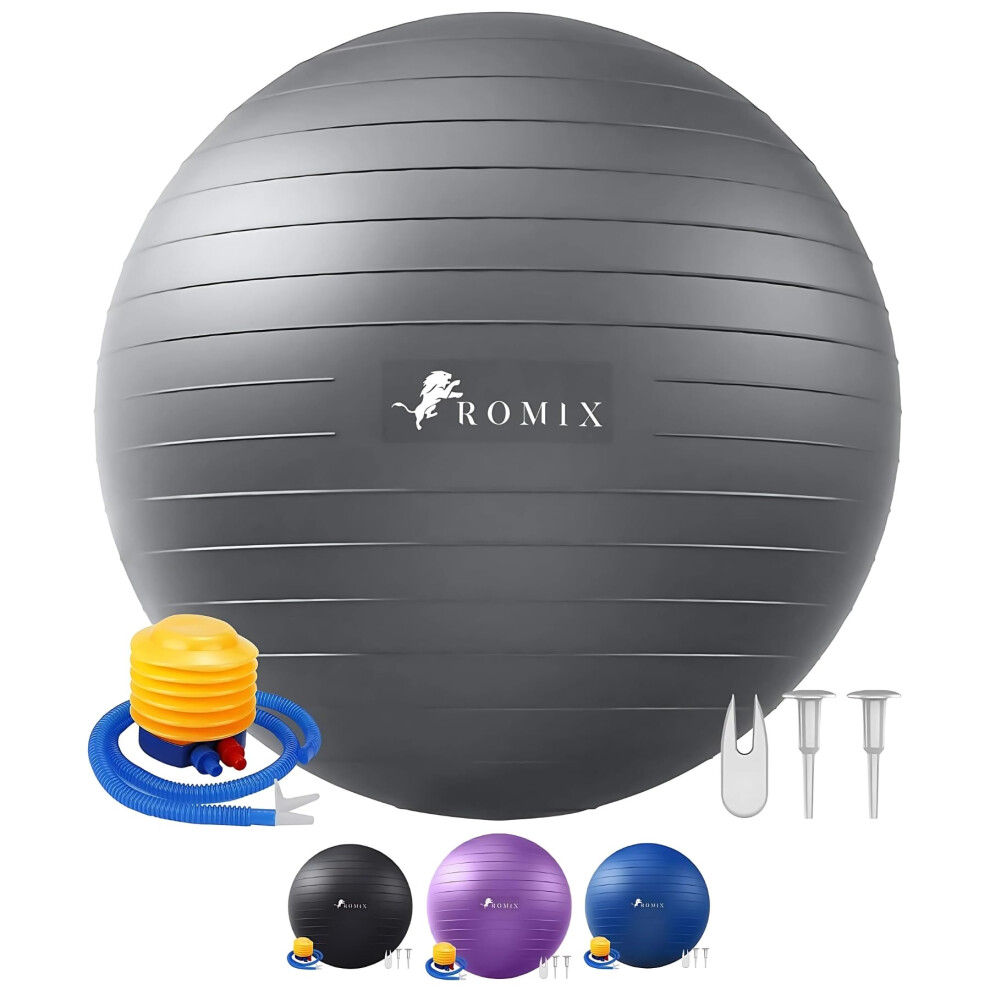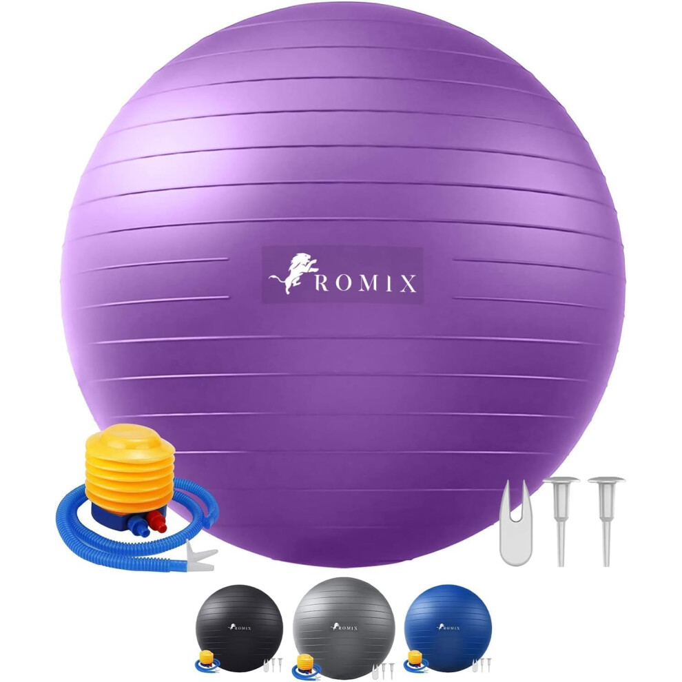 ROMIX Exercise Ball 65cm 55cm 75cm, Anti burst Pregnancy Ball with Hand Pump, Extra Thick Birthing Balls, Slip Resistant Fitness Swiss Yoga Gym Ball for Yoga, Labour, Pilates, Fitness, Stability