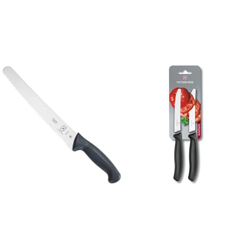 Victorinox Bread/Pastry Knife Swiss Classic in Gift Box, Stainless Steel, Black, 30 x 5 x 5 cm & 11 cm Swiss Classic Serrated Edge Tomato/Utility Knife in Blister Pack, Set of 2, Black