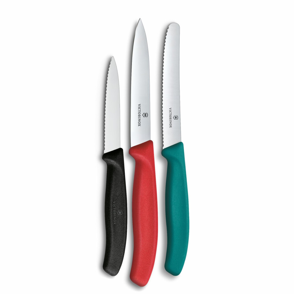 Victorinox Swiss Classic paring Knife, Tomato Knife and Breakfast Knife Set, 3-Piece, Extra Sharp, Coloured
