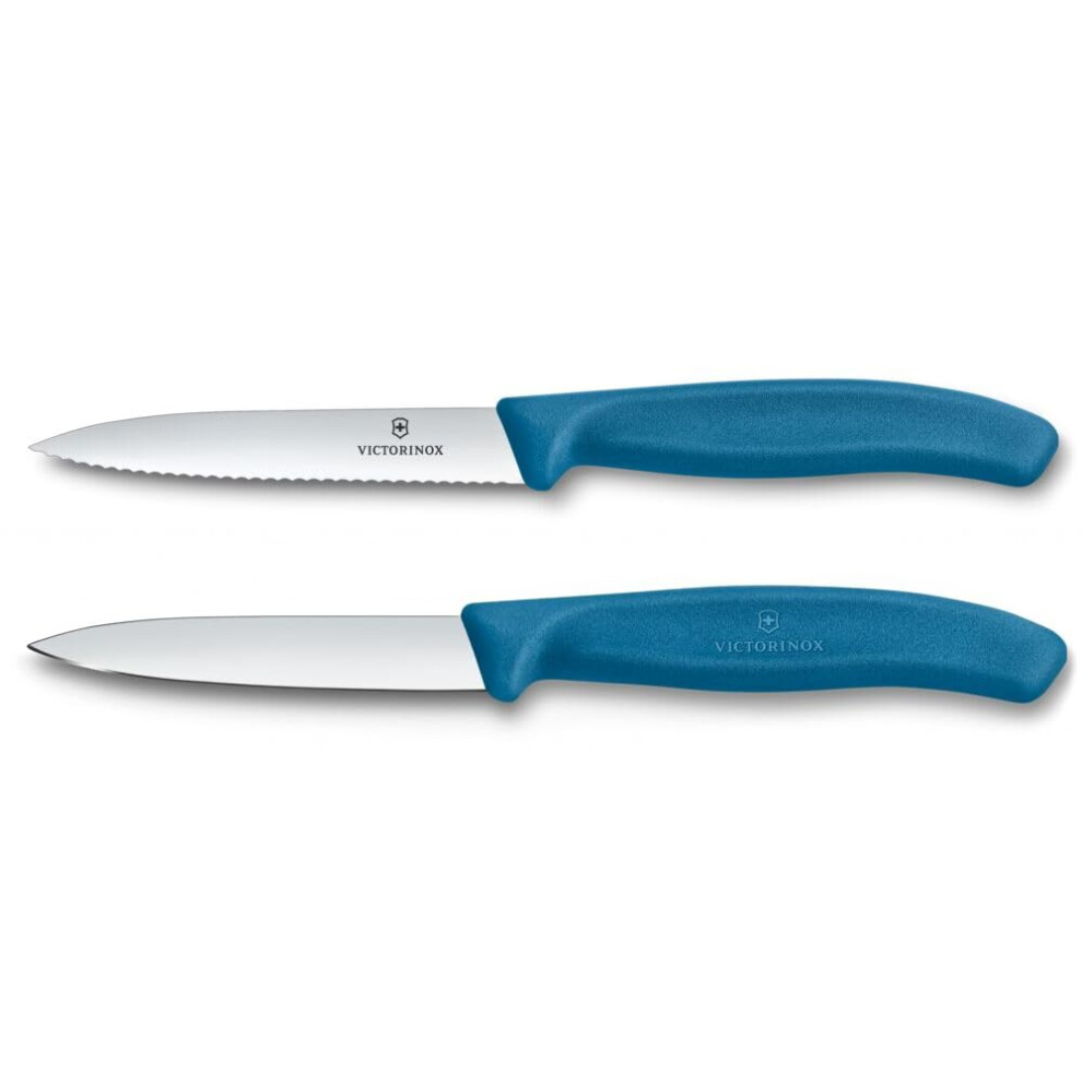Victorinox Swiss Classic, Tomato and Vegetable Knife Set, 2-Piece, Extra Sharp Blade, Plastic Handle, Stainless Steel, Swiss Made, Blue