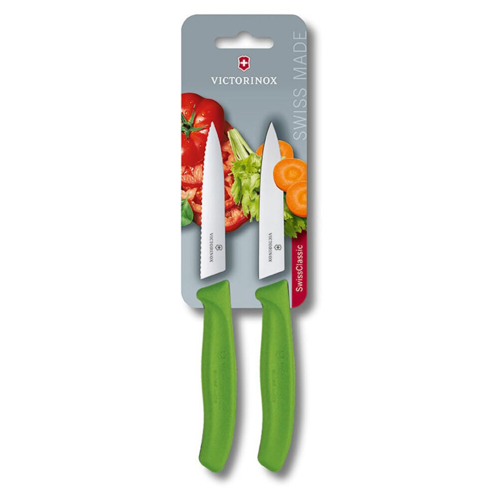 Victorinox Swiss Classic, Tomato and paring Knife Set, 2-piece, Extra Sharp Blade, Plastic Handle, Stainless Steel, Swiss Made, Green
