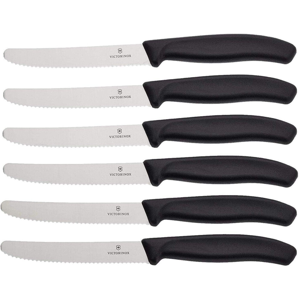 Victorinox 6-Piece Swiss Classic Tomato/Table Knife Set with 11 cm Blade, Stainless Steel, Black