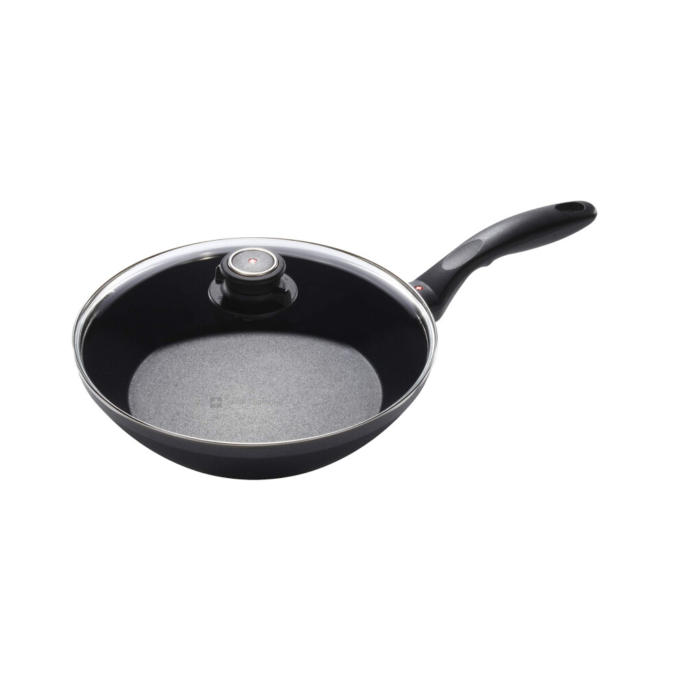 Swiss Diamond 9.5"""" Stir Fry Pan Edge Nonstick Diamond Coated Aluminum Stir Fry Pan With Lid - PFOA Free Dishwasher Safe and Oven Safe Stir Fry