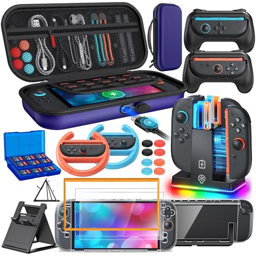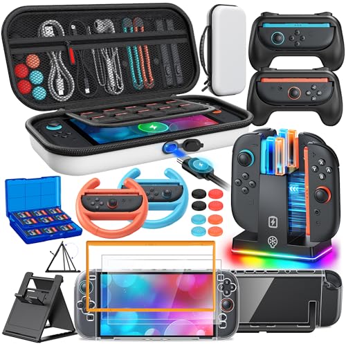 20 in 1 Switch 2 Accessories Bundle with Hard Carrying Case, Switch 2 Controller Charger, Screen Protector, Grips for Joy Con, Steering Wheels for Mario Kart, Clear Protective Cover Case(Gift Pack)