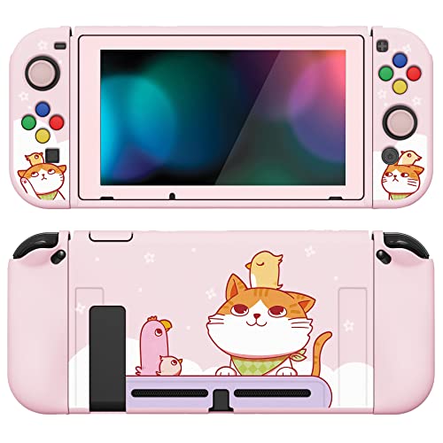 playvital ZealProtect Soft Protective Case for Nintendo Switch, Flexible Cover Protector for Switch with Tempered Glass Screen Protector & Thumb Grips & ABXY Direction Button Caps - Kitten & Chicken