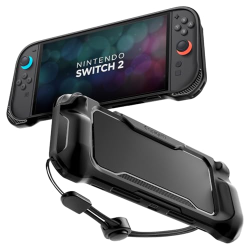 Spigen Rugged Armor Case Compatible with Nintendo Switch 2 2025 Cover with Hand Strap - Matte Black
