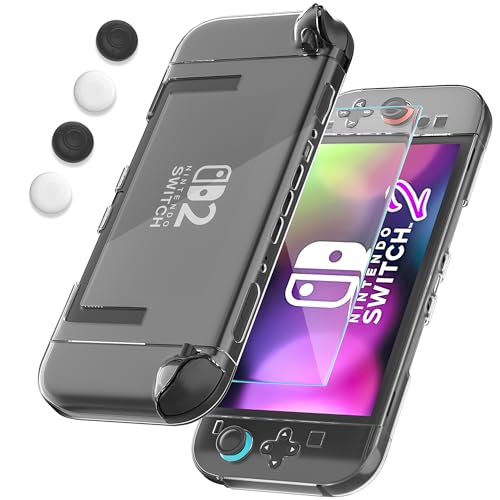 FANPL [Improved Easy Dockable Version Clear Case for Nintendo Switch 2, Protective Cover for Switch 2 and JoyCon Controller with Screen Protector 4 Thumb Grip Caps - Strong and Durable