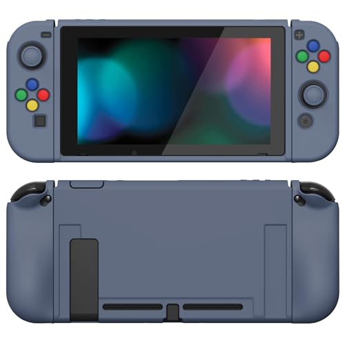 playvital ZealProtect Soft Protective Case for Nintendo Switch, Flexible Cover Protector for Nintendo Switch with Glass Screen Protector & Thumb Grip Caps & ABXY Direction Button Caps - Slate Gray